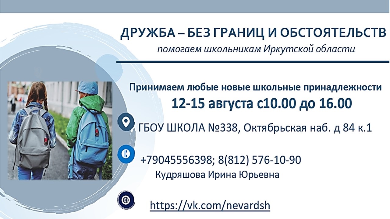 о В Санкт-Петербурге с 12.08.2019по 15.08.2019 Сектором по содействию детских инициатив совместно с ОАО "РЖД",РДШ и Всероссийским студенческим корпусом спасателей проводит ся социальная акция помощи школьникам Иркутской области, чьи дома и имущество пострадали во время наводнений. С подрбной информацией можно ознакомиться во вложении.